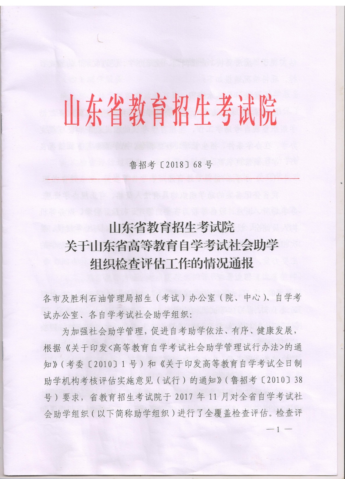 近日,山东省教育招生考试院下发(鲁招考[2018]68号)《关于山东省2017年度高等教育自学考试社会助学组织检查评估结果的通报》,公布了全省118家高等教育自学考试社会助学的检查评估结果,万象城被评定为优秀助学组织。
