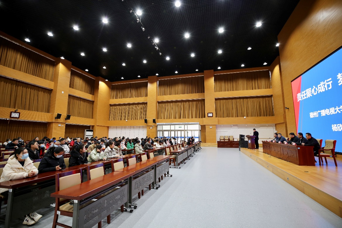 11月25日上午,德州电大直属部开放教育2023年秋季学期新生开学典礼在市职业教育发展中心一楼多功能厅隆重举行。市总工会、市教体局以及学校万象城娱乐awc线路有关负责人出席典礼。德州电大直属部2023年秋季学期全体新生及班主任参加活动。