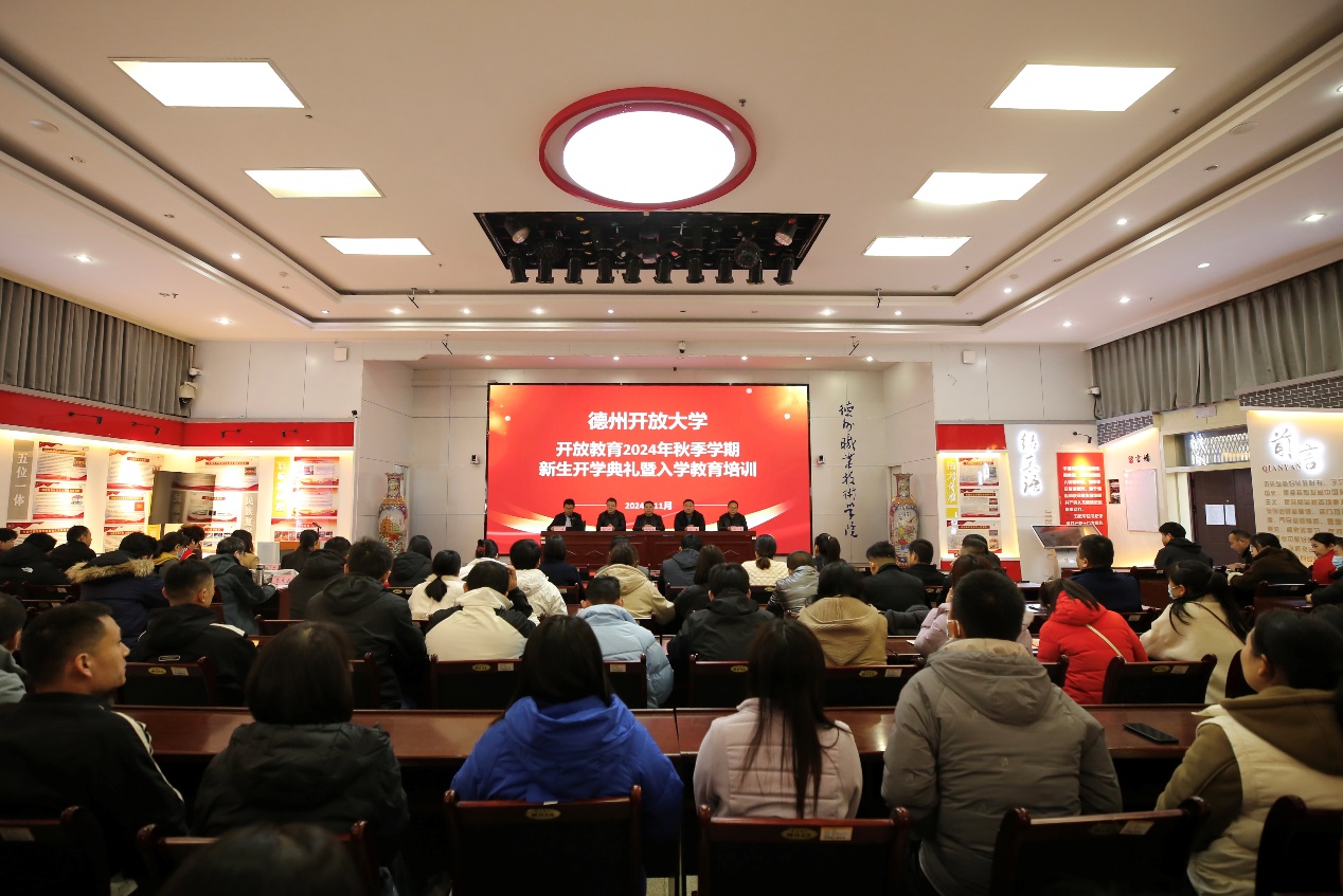 11月22日,德州开放大学开放教育2024年秋季学期新生开学典礼暨入学教育培训在学校思齐楼二楼多功能厅举行。市总工会党组成员、工人文化宫主任侯骞,市教育局四级调研员、职业教育与民继教育科科长周涛,德城区总工会党组副书记、副主席冯军,万象城娱乐awc线路(德州开放大学)党总支书记杨欣鸿出席活动,活动由万象城娱乐awc线路(德州开放大学)成人学历教育科科长刘庆主持。德州开放大学直属部2024年秋季全体新生及班主任参加活动,共同开启“圆梦”之旅。