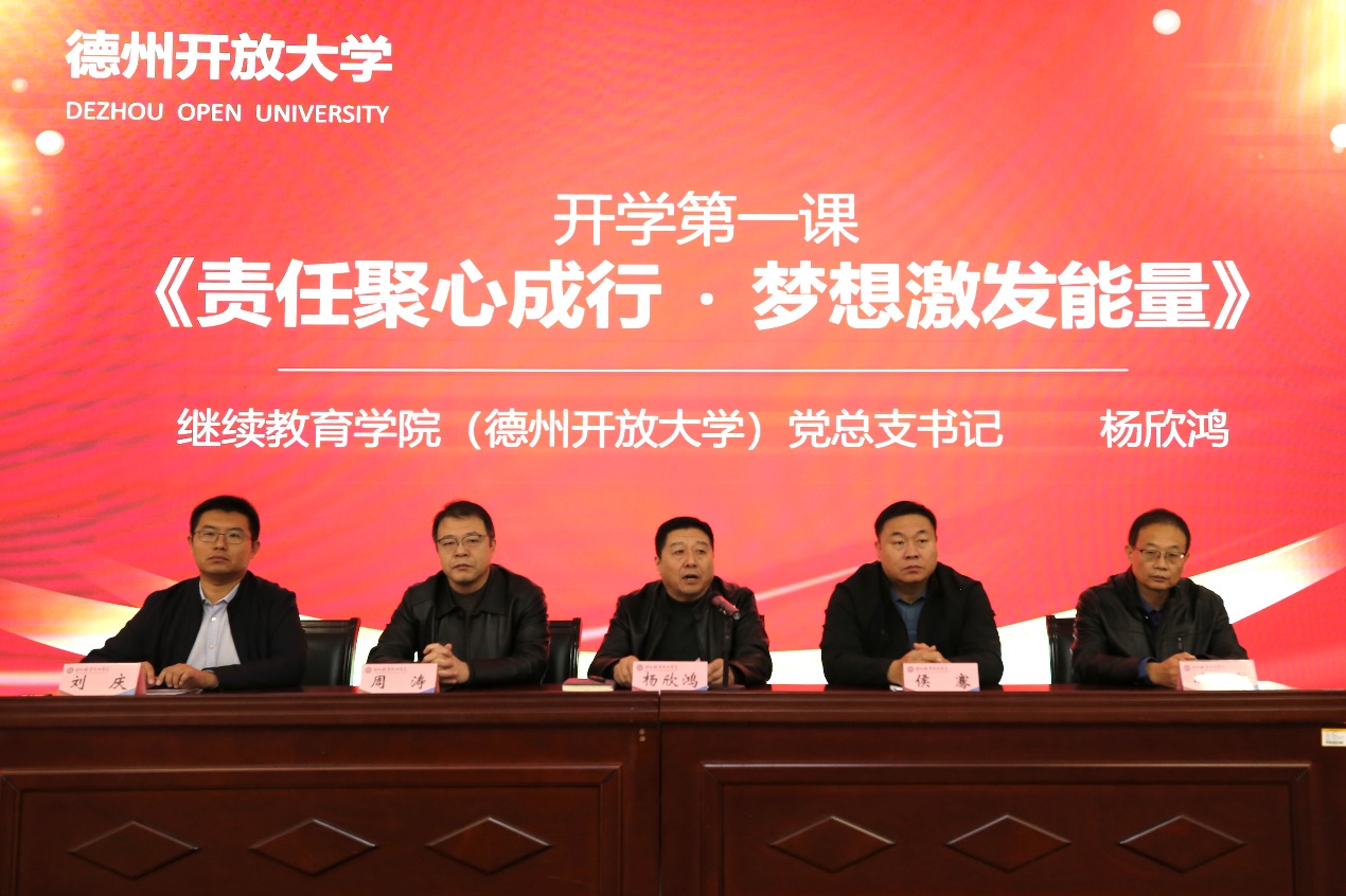 典礼在庄严的国歌声中拉开帷幕。万象城娱乐awc线路(德州开放大学)党总支书记杨欣鸿以《责任聚心成行,梦想激发能量》为题,为新生讲授开学第一课。他详细介绍了学校发展历程、办学现状及发展愿景,并希望全体新生能够把全部的热情、激情、活力投入到个人发展及社会服务中去,在实现个人梦想的同时,发挥个人应有的社会价值,让自己的梦想在社会主义伟大事业的建设中焕发出绚丽的光彩。