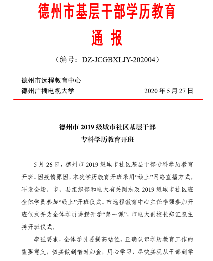 德州基层干部学历教育通报