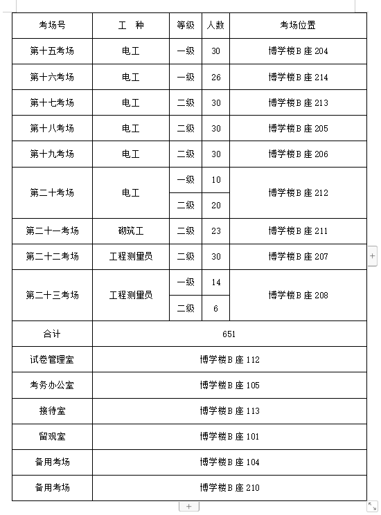 万象城金蓝领高级技师、技师鉴定共670人,共8个工种,理论考场设在博学楼B座,实操考场、论文答辩设在各系鉴定基地,每工种市局安排3名考评员、3名答辩评委。各系培训基地负责安排实操考场、论文答辩室、答辩备考室。请各系鉴定基地按照防疫要求配备相应的防疫用品,按要求间隔。