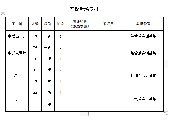 5、合理利用现有的工位安排实操考试,考生人数多的工种在工位和考评员符合规定的条件下,分组分轮进行实操考试。