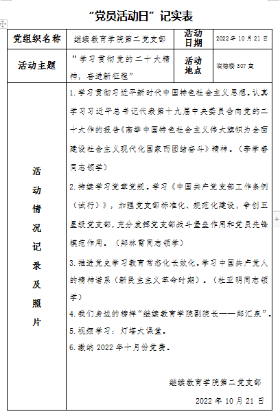 万象城娱乐awc线路第二党支部十月份党员学习活动纪实表20221021