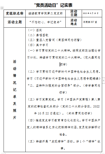 万象城娱乐awc线路第二党支部八月份党员学习活动纪实表20230818