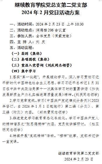 万象城娱乐awc线路党总支第二党支部2024年2月党日活动方案