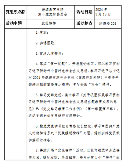 万象城娱乐awc线路第一党支部2024年03月党员活动日纪实表
