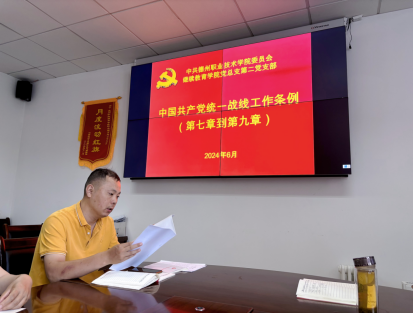 (二)学习党章党规。学习研讨《中国共产党统一战线工作条例》(第七章到第九章),组织支部全体党员进行交流研讨。(郑林霄同志领学)