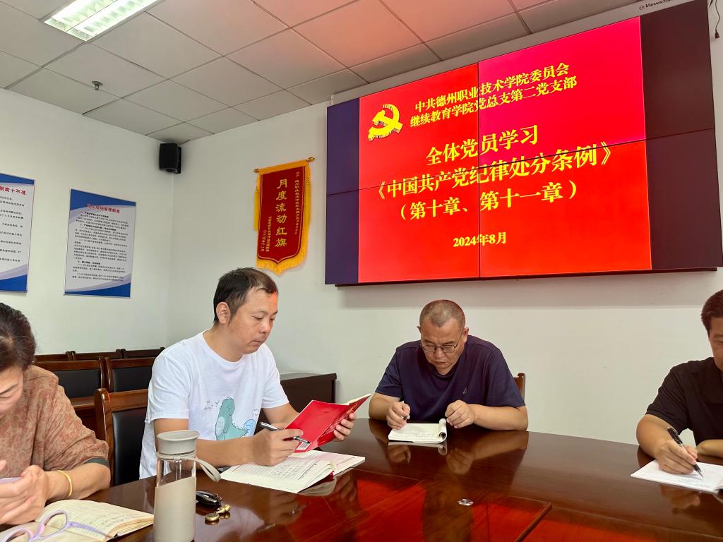 (二)学习研讨党章党规。学习研讨《中国共产党纪律处分条例》(学习第十章、第十一章),组织支部全体党员进行交流研讨。(郑林霄同志领学)