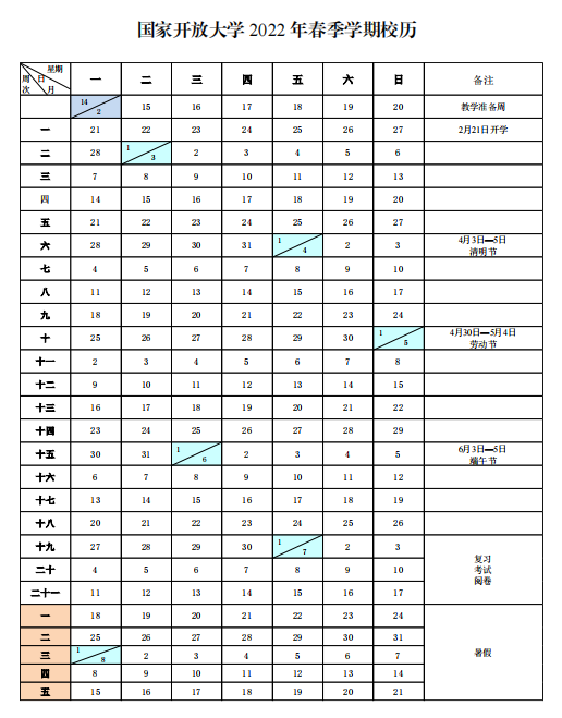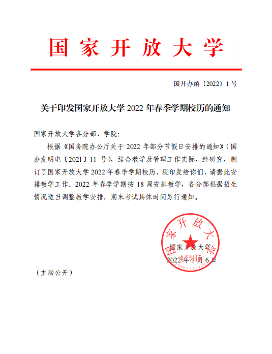国家开放大学2022春校历