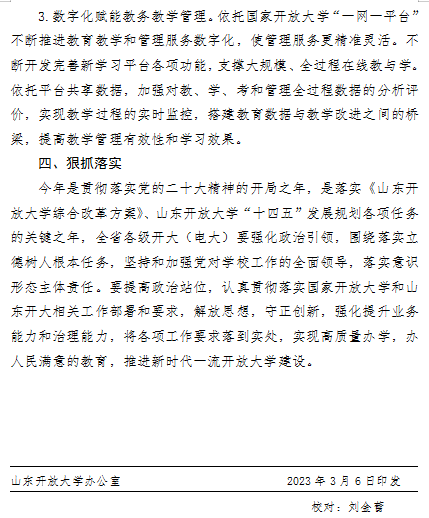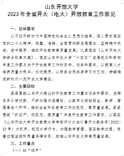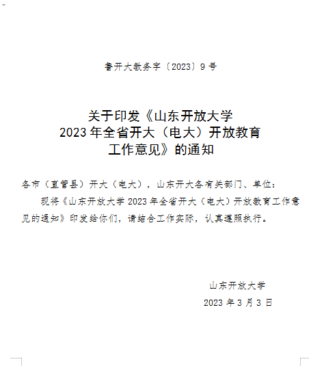 关于印发《山东开放大学2023年全省开大(电大)开放教育工作意见》的通知