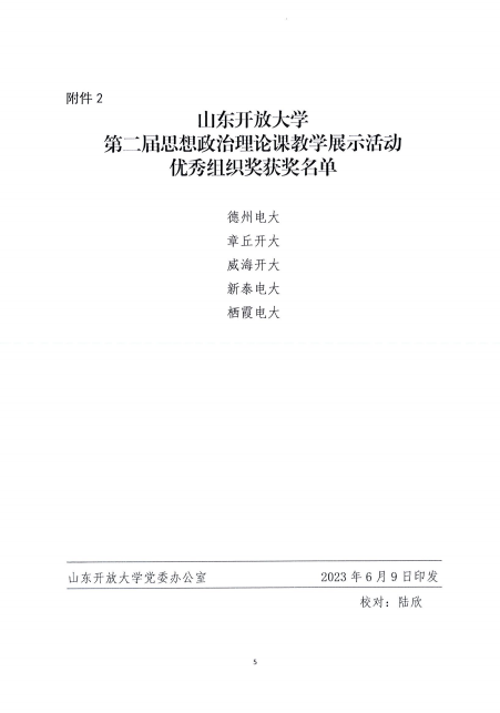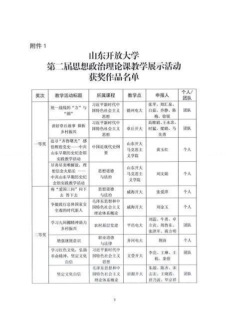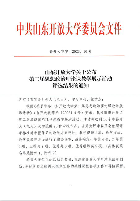 山东开放大学关于公布第二届思想政治理论课教学展示活动评选结果的通知