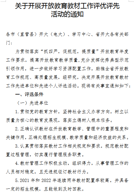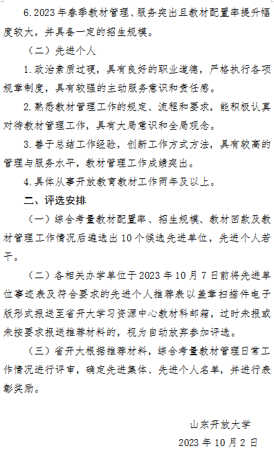 关于2023年秋季学期开放教育新生教材配置工作的通知