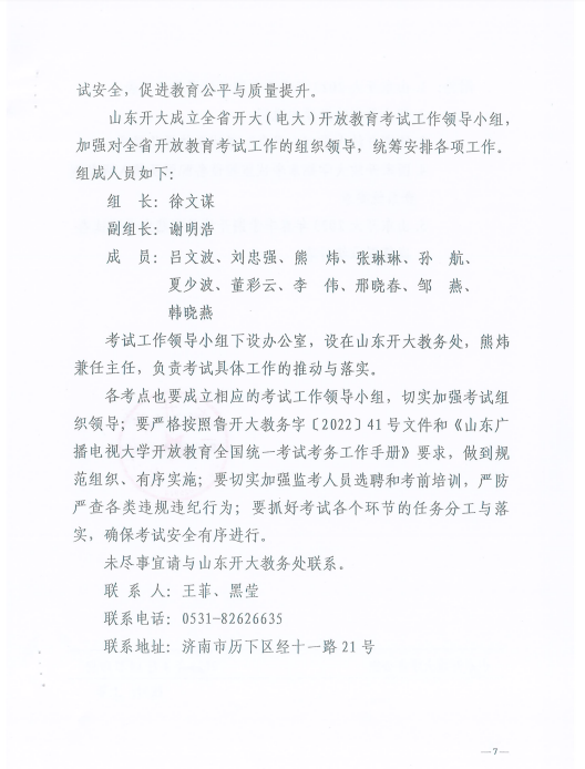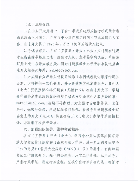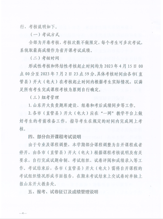 鲁开大教务字【2023】12号-关于全省开大(电大)开放教育2023年春季学期期末考试工作安排的通知