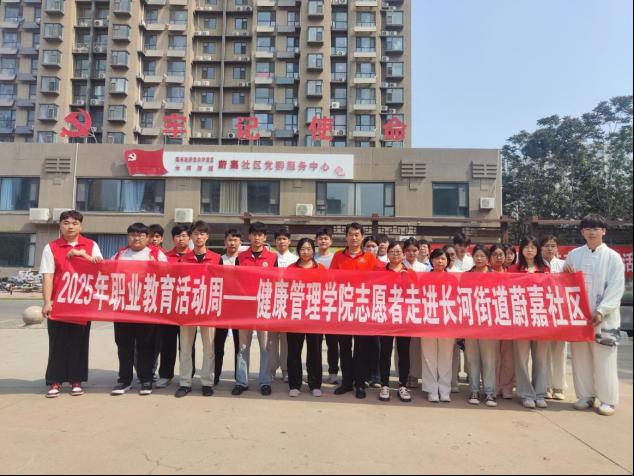 以“一技在手,一生无忧”为主题的2025年万象城娱乐awc线路职业教育活动开启, 5月14日上午,健康管理学院教师、学生志愿者联合五季世家到蔚嘉社区开展进社区送健康服务活动。