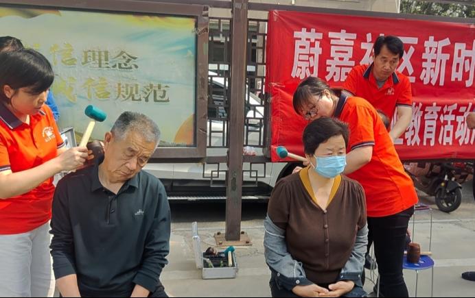 健康管理学院联合五季世家(山东)健康科技有限公司把健康送到群众家门口。五季世家经络叩击疗法是双非遗品牌,现在已是第五代传承,在健康养生领域独具特色。非遗传承人赵嘉文给社区居民详细讲解了经络叩击疗法的起源、理论根基,它结合了按摩、拔罐、针刺、刮痧、以穴代药的方法,通过松、通、调、固、补、养的叩击、松解方式作用于人体体表相关部位,配以律动的叩击、松解、按压,达到保健的目的。社区群众认真聆听,踊跃参与互动体验环节,在技师指导下亲身尝试,感受经络被激活、身体放松的奇妙变化。此外,针对老年人普遍存在的关节疼痛,技师们还在健康咨询环节提供一对一建议,传授日常调理小妙招。