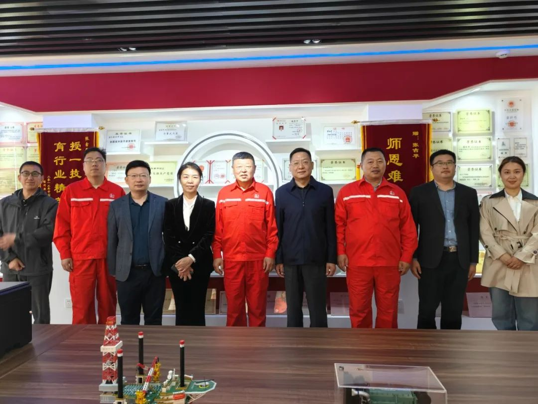 活动最后,一行人调研了张吉平技能大师工作室和黄河口工匠学院,现场观摩其建设思路及研发成果,深深地感受了国家级技能大师的风采。作为中国石化技能大师,张吉平扎根石油工程一线38年,矢志不渝做勇毅创新的能工巧匠,为推动石油工程装备现代化做出了积极贡献,先后被授予全国技术能手、全国五一劳动奖章、中华技能大奖、全国劳动模范等荣誉称号,并享受国务院政府特殊津贴。