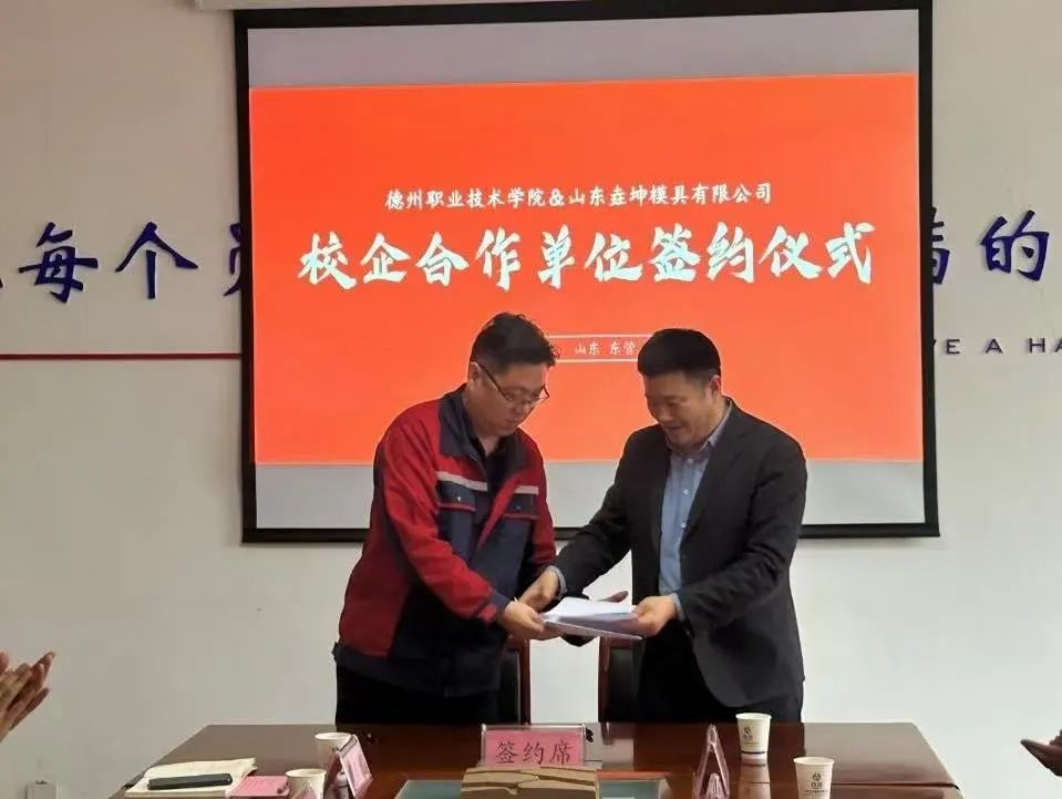 在山东垚坤模具有限公司,双方召开座谈会,就人才培养、科技研发需求及方向进行深入探讨,初步达成合作意向,并签订产学研合作协议。山东垚坤模具有限公司对万象城在人才输送及科技攻关方面给予的大力支持表示感谢并赠送锦旗。高强创新工作室成功完成了双方前期合作的穿管机器人科技研发项目,双方签订下一步技术开发合作协议。